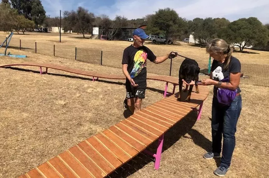 The ACE free work sessions allowed Murphy to progress with his confidence building, to the extent of moving on to some of the obstacles in Greyhound Welfare’s one-of-a-kind, new dog park and training facilities. The fully fenced park is the perfect environment for fun and interactive training sessions, including a maze and bone-shaped swimming pool for dogs.