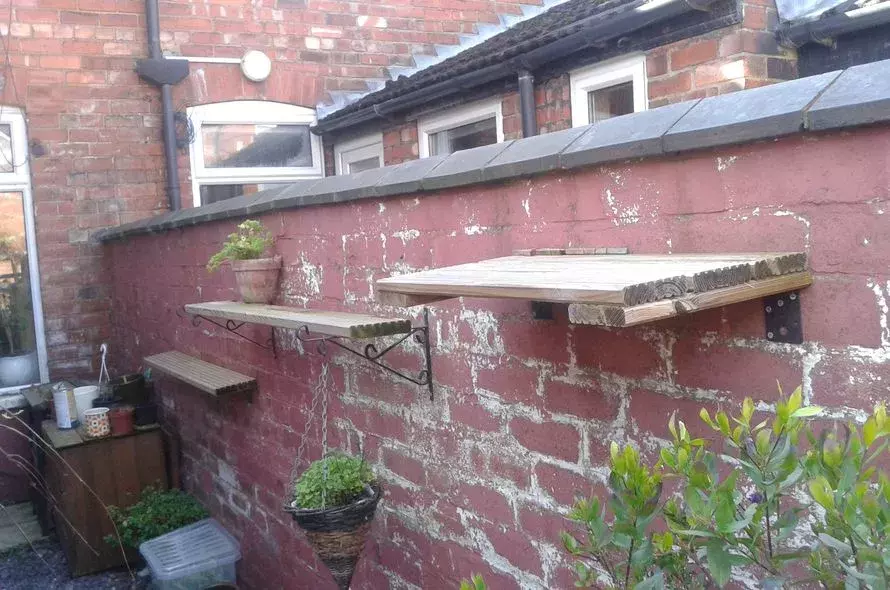 Suitable high places for cats include shelves, ledges, tables and benches.