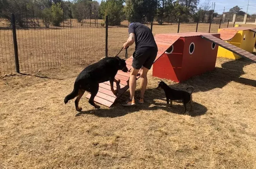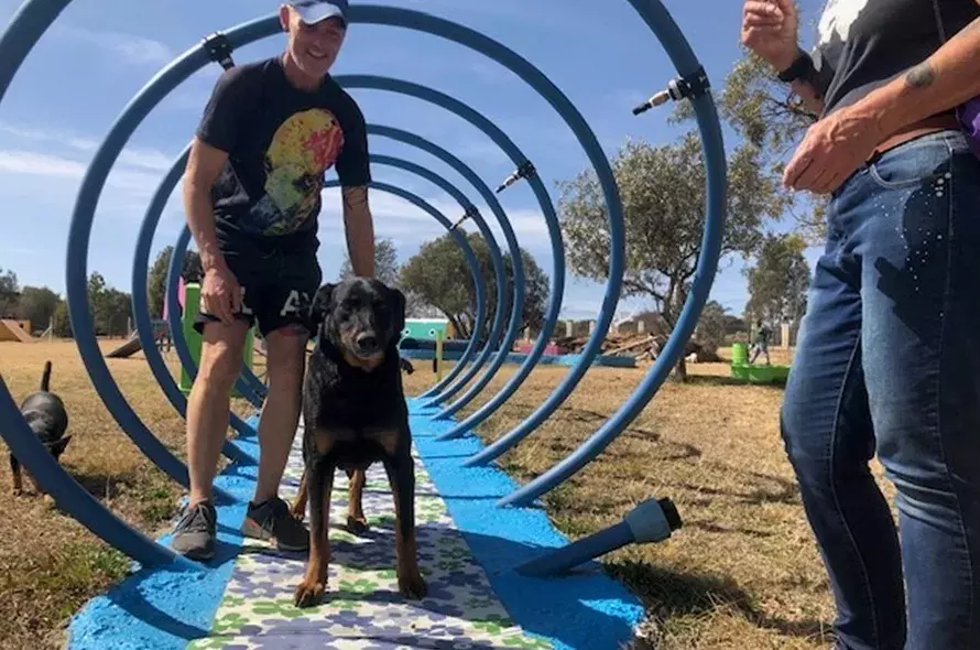 The ACE free work sessions allowed Murphy to progress with his confidence building, to the extent of moving on to some of the obstacles in Greyhound Welfare’s one-of-a-kind, new dog park and training facilities. The fully fenced park is the perfect environment for fun and interactive training sessions, including a maze and bone-shaped swimming pool for dogs.